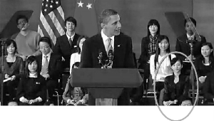 不久前,奧巴馬剛剛結(jié)束訪華,此行不僅讓奧巴馬成為各大媒體關注的焦點,同時也使一位神秘女子成為網(wǎng)絡紅人。11月16日在上海科技館會場,出現(xiàn)在奧巴馬身后的一名黑衣女子被攝入媒體鏡頭中,其亮麗的外形、獨特的氣質(zhì)吸引了眾多網(wǎng)民的眼球,網(wǎng)友迅速展開對女孩的“人肉搜索”。范冰冰親戚?楊瀾侄女?或者又是一場炒作?種種未經(jīng)確定的猜測充斥著各大論壇,也為黑衣女孩的身份蒙上了一層神秘的面紗。
