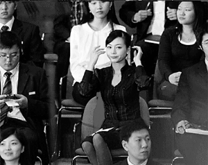 11月16日13時,對中國進行國事訪問的美國總統(tǒng)奧巴馬走進上海科技館會場,與中國青年展開對話。但是和奧巴馬的演講相比,現(xiàn)場攝影記者對一名黑衣女子表現(xiàn)出了更大的興趣。這名美女在現(xiàn)場脫掉紅色外套露出黑色套裝的全過程被記者用相機記錄下來,被制作成GIF動畫上傳網(wǎng)絡,隨后這組動畫在網(wǎng)上論壇以及QQ群里廣泛傳播,隨后又有網(wǎng)友將奧巴馬演講視頻中有關該女子的片段截圖上傳,黑衣美女的美貌和氣質(zhì)迅速傾倒眾人。