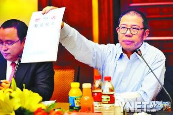 農(nóng)夫山泉董事長鐘睒睒昨表示對復(fù)檢“不予認(rèn)同”。圖為11月30日鐘睒睒展示有關(guān)部門的檢驗(yàn)報(bào)告-供圖/新華