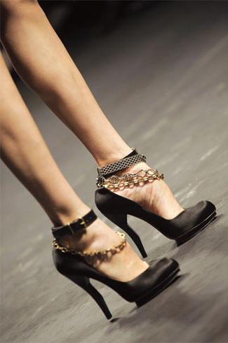 不景氣時期,女人的鞋跟似乎會變高,很顯然,本季天馬行空的鞋形正是對經濟蕭條的一種藐視。然而關于高跟鞋究竟象征著女權還是男權的爭論已經持續了幾十年,時尚史學家Giorgio Riello 與Peter McNeil 在《鞋子:從涼鞋到球鞋的歷史》一書中指出,1920 年代的婦女參政多以穿高跟鞋來展現女性特質,她們穿著鈕扣靴和高跟運動鞋向世人證明,參政并不會抹煞女人味。
