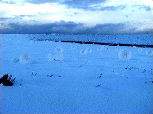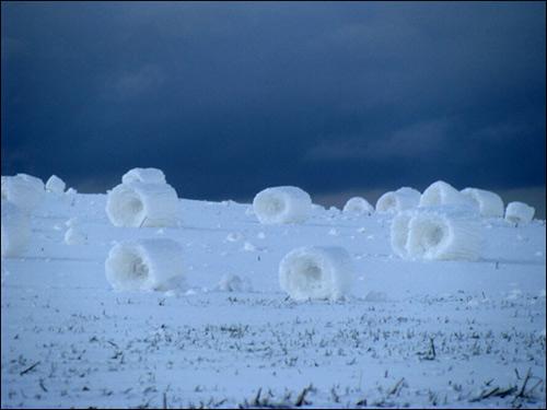 不尋常的自然現(xiàn)象很多人都有所耳聞:乳狀云、逆溫層或幻日弧等等。但是看看下面這些圖片,相信再見(jiàn)多識(shí)廣的人也會(huì)被嚇一跳:這些東西怎么看都像是巨無(wú)霸白色高脂蛋糕。然而事實(shí)上,它們是“雪卷”。今年3月份,提姆·特維鮑在美國(guó)愛(ài)達(dá)荷州大草原上偶爾發(fā)現(xiàn)了這些奇妙景象,并用相機(jī)拍攝下來(lái)。