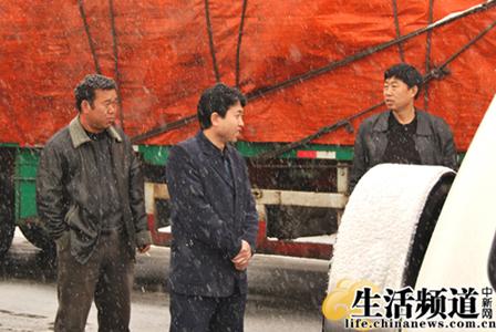 往四平的路上,吉林慈善會汲壽平主任(中)風雪同行