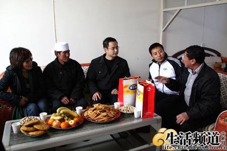 在蘭成明家,銀川市扶貧辦主任向雅士利集團張培喜先生介紹情況