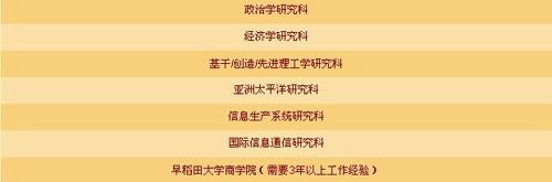 早稻田大學開放以下專業供獲得獎學金的學生就讀