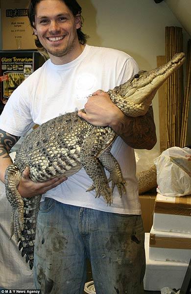 福格特每年花8000英鎊的飼料費在他心愛的鱷魚身上,他說他從小就對鱷魚很著迷,于是決定一輩子都要和鱷魚生活在一起。(王楠)