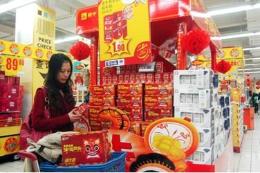 圖注:超市里,消費者對于蒙牛“牛運金虎”牛奶喜愛有加