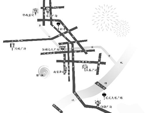 運(yùn)河文化廣場中心設(shè)置大型主題燈座,廣場南側(cè)江南戲臺(tái)(露天)將舉辦祈福2010運(yùn)河元宵燈彩音樂會(huì)。