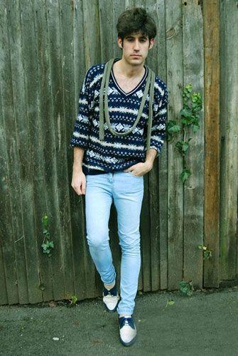 1.藍(lán)色雪花毛衣 Beyond Retro 2.綠色細(xì)圍巾 River Island 3.淺藍(lán)色瘦腿褲 Replay 4.黑白復(fù)古鞋