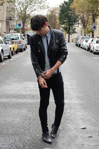 1.短款皮夾克 Vintage shop 2.淡藍(lán)色襯衫 ZARA 3.黑色瘦腿褲 topman 4.黑色系帶皮鞋 ZARA