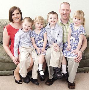 鮑登(左)和安迪(右2)與兩對龍鳳胎在一起