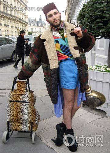 濟公+妖男+流浪漢style的美妙融合!別看他乍一眼好像穿得很隨便很破爛,這一身一點也不便宜的,Stella McCarthy的女裝(注意是女裝!)無跟鞋(沒記錯的話),還有那虎皮包應該都價值不菲!