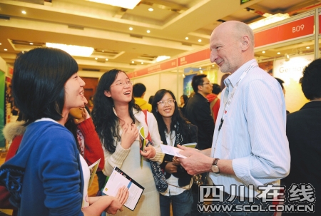 昨日(28日),由中國教育國際交流協(xié)會(huì)主辦的2009年中國國際教育巡回展抵達(dá)成都。與往年相比,本次展覽規(guī)格更高,展出院校和熱門專業(yè)更具特色,共吸引了美國、英國、德國、法國、澳大利亞、加拿大、意大利等13個(gè)國家的近100所正規(guī)院校。其中,有8個(gè)國家的駐華大使館和海外權(quán)威教育機(jī)構(gòu)組織了龐大的國家展團(tuán),部分國家還直接派出簽證官現(xiàn)場接受留學(xué)咨詢。