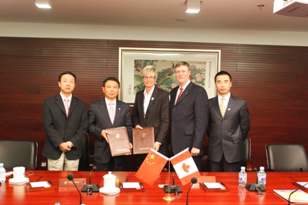 中新網(wǎng)11月20日電 據(jù)教育部留學(xué)服務(wù)中心網(wǎng)站報(bào)道,11月16日, 國(guó)家留學(xué)基金管理委員李建民副秘書(shū)長(zhǎng)會(huì)見(jiàn)了來(lái)訪(fǎng)的加拿大女王大學(xué)副校長(zhǎng)Dr. Janice DeakinDr 和Dr. John Dixon一行,并就設(shè)立博士生項(xiàng)目簽署了雙方合作備忘錄。協(xié)議規(guī)定,國(guó)家留學(xué)基金委和加拿大女王大學(xué)將共同資助中國(guó)優(yōu)秀學(xué)生到該校攻讀博士學(xué)位。