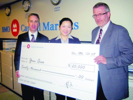 中新網1月15日電 據加拿大《明報》報道,加拿大滿地可銀行(BMO)一年一度的“資本市場高級研究獎學金”已于日前公布了評選結果,約克大學數學和統計學博士生,中國留學生喬云(Yun Qiao)憑借其博士論文贏得此項殊榮,獲得由該銀行頒發的2萬元獎學金。