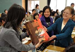 來自中國北京師范大學、即將在人文科學研究院留學的顏淑蘭(24歲)參加贈送儀式后特別感動,滿臉喜悅地表示:“一個人到異國他鄉(xiāng)求學,心里沒有底,但今天能參加這個活動,看到日本的人們對我們?nèi)绱岁P(guān)心,自己受到了莫大的鼓勵。”(米灝)