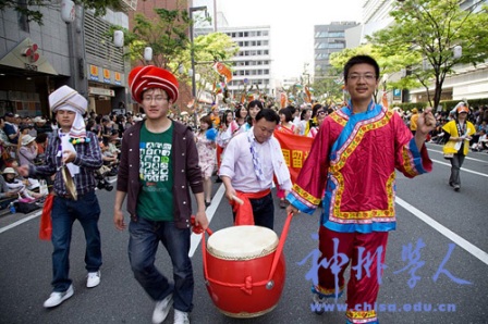 5月3日,福岡市一年一度的“博多打鼓節”正式拉開帷幕。九州地區中國學友會派出了來自九州大學、九州女子大學、九州外國語學院、福岡工業大學等63名同學組成的“中國留學生方隊”參加此次活動。