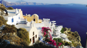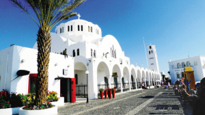 說到圣托里尼島,眼前自然便浮現(xiàn)出迷人的藍白二色。