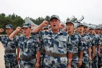 7月27日,參加中俄聯演的空軍戰斗群官兵出征前在國旗前集體宣誓,立志圓滿完成聯演任務,為祖國爭光。 曹占禮 攝(來源:中國軍網)