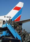 圖為中方導演部及指揮部人員乘專機全部出境,抵俄參演。中國軍網記者李靖攝