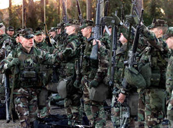 美國五角大樓發出增援海灣命令后,海軍陸戰隊奉命從杰克遜維爾海軍陸戰隊基地出發。在北卡羅萊納國家港口待命的美艦龐賽號負責運載炮兵重型裝備。
