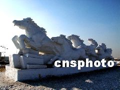 日前,兩座高7米,長20余米的大型雪雕奔馬圖在長春市世紀廣場落成。該奔馬圖由六匹英俊的奔馬組成,預示著順利送走馬年迎來羊年,為此吸引了眾多國內外游客的視線。樊甲山 攝