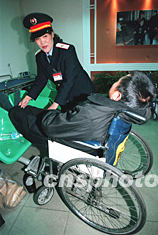 北京站在春運期間,開辟了全國第一家敬老助殘候車室,免費幫助老弱病殘旅客乘車。
