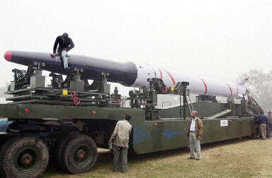 印度將在本月26日的國慶日上展示1999年4月試射成功的“阿格尼”地對地導彈,射程達2500公里,有效負載為1噸,并可攜帶核彈頭。