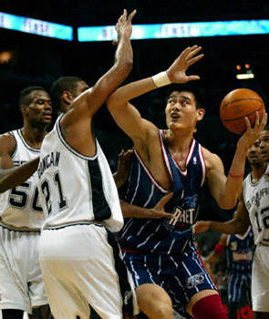 在北京時(shí)間21日早6點(diǎn)開始的休斯頓火箭隊(duì)作客圣安東尼奧馬刺的NBA常規(guī)賽,可謂是姚明要翻越的五座山峰中最艱難的一座。羅賓遜一開場(chǎng)就對(duì)姚明嚴(yán)防死守,后者顯得很不適應(yīng);鸺(duì)的投籃命中率低于馬刺,內(nèi)線又被鄧肯肆虐,雖然姚明11分8個(gè)籃板,對(duì)方也嘗到了“姚氏火鍋”的厲害,但最終5分之差不敵馬刺雙中鋒,敗下陣來。