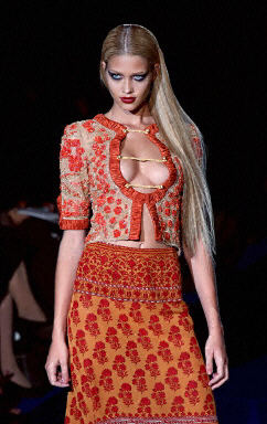 1月20日,時裝模特在巴黎展示2003年新款的春夏時裝。為聲援反艾滋病活動,法國的服裝設計大師Jean-Paul Gaultier和前超級名模Ines de la Fressange將在1月22日舉辦一次慈善晚會,為艾滋病研究和防治募集資金。