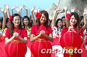 圖:二百多名模特到海南三亞向全國人民拜年