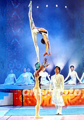 廣州軍區(qū)的掌上芭蕾《化蝶》也是晚會歌舞類節(jié)目的亮點,這個節(jié)目早在湖南金鷹節(jié)就曾亮相過,曾經(jīng)獲得第二十六屆蒙特卡羅金小丑芭蕾舞金獎,不過此番被央視用《梁祝》做包裝,還是讓現(xiàn)場觀眾嘆為觀止。兩個舞蹈演員在觀眾面前表演了芭蕾絕技,最讓人不可思議的是女演員居然把身體的平衡點放在男演員的肩膀甚至頭頂上。今年歌舞演員新面孔多于往年,特別是中央電視臺大獎賽上,獲得優(yōu)異成績的這些演員,將出現(xiàn)在今年春節(jié)晚會當(dāng)中。