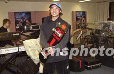 歌星陳奕迅2月5日在香港為即將舉行之個人演唱會進行彩排,彩排期間亦將喜愛的滑板帶在身旁。鄧慶樂 攝