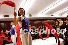 春節(jié)期間,美國(guó)芝加哥華人華僑相聚一堂,他們跳起紅綢舞,過(guò)個(gè)喜氣洋洋的中國(guó)節(jié)。作者:王瑤
