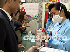 廣東目前處于呼吸道感染疾病多發季節,廣州地區先后發生非典型性肺炎病例。市民紛紛到藥店購買板藍根等藥品預防感染疾病。作者:劉衛勇