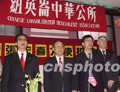 二月十五日農歷正月十五下午,有百年歷史、在僑界有廣泛影響的紐英倫中華公所決定升中華人民共和國國旗。在升旗儀式上,紐英倫中華公所主席黃兆祥(左一)、中國駐紐約總領事張宏喜(左二)、中國駐紐約副總領事黃惠康(右二)、紐英倫中華公所首席執行官周西民(右一)與當地僑胞高唱《歌唱祖國》。作者:陳建