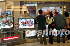 近來(lái),全球品牌等離子電視機(jī)正以迅猛的速度進(jìn)軍香港市場(chǎng),這種“先入為主”的格局,或許正是等離子電視機(jī)走進(jìn)香港百姓家庭的前奏。圖為香港一電器店展示各款價(jià)格不菲的等離子電視機(jī)。中新社傳真 潘索菲 攝
