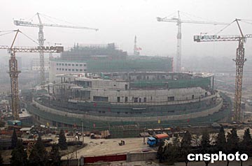 中新網2月23日電 倍受矚目的大型文化設施—中國國家大劇院的戲劇場工程日前實現結構封頂,整個工程預計明年竣工。