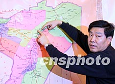 圖:新上任的中共喀什地委書記史大綱介紹地震災情