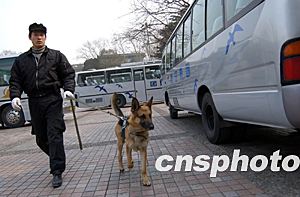 二十八日,警察在全國政協(xié)委員駐地北京友誼賓館加強(qiáng)安全保障工作,派出警犬對駐地的停車場、花園等地進(jìn)行徹底搜查,確保安保工作萬無一失。