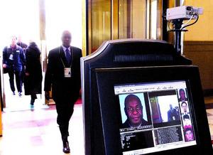 昨天下午,全國(guó)政協(xié)十屆一次會(huì)議在人民大會(huì)堂舉行第一次新聞發(fā)布會(huì)。在進(jìn)門(mén)處擺放的一臺(tái)屏幕引起了記者們的注意,因?yàn)槊课挥浾哌M(jìn)門(mén)時(shí),都可從屏幕上看到自己的照片、單位等情況。據(jù)了解,這是一套非常先進(jìn)的安檢系統(tǒng)。