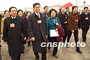全國人大代表、上海市長韓正(左二)五日率領上海人大代表出席十屆全國人大一次會議開幕式。作者:盛佳鵬