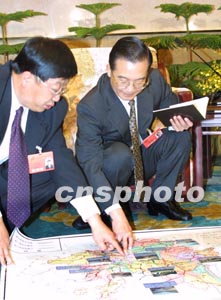“你說的是從虎跳峽?還是從三江口?”溫家寶副總理一面打斷他的話,一面蹲在地上細心地尋找起代表所說的地方。
