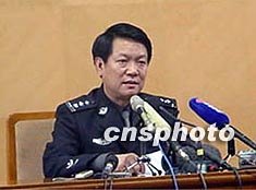 北京市警方三月八日舉行記者會,市公安局新聞發言人劉蔚向媒體介紹清華大學、北京大學爆炸案告破過程。作者:任海霞