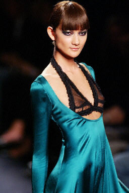 2003年3月10日,在法國巴黎舉行的2003至2004年秋冬時裝展上,模特現場展示了Yves Saint Laurent的新款服飾.