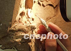 經過近半年時間的修復,現存吉林大學博物館的一具在長春境內發現的新種恐龍化石已基本恢復本來面目。經國內權威專家鑒定,這極有可能是世界上首次發現的一個新種恐龍,并初步將它歸類為古角類恐龍。圖為該恐龍化石的頭部。作者:韓丹