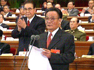 全國人大常委會委員長吳邦國在人大會議閉幕式上講話。