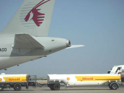 西方石油公司在中東地區已經三分市場,圖為美國石油公司為海灣航空飛機加油。(春風)