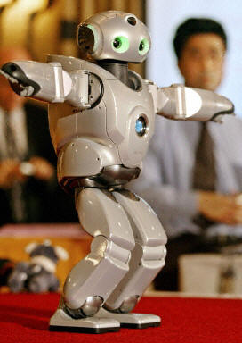 27日,日本SONY公司在東京展示了新研制的“SDR-4X II”型機器人,這種型號的機器人會跳舞,且能夠與人通話、通過傳感器越過障礙物行走。“SDR-4X II”型機器人將在4月3日的橫濱2003機器人展上亮相。