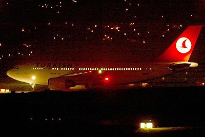 北京時間今天凌晨,土耳其航空公司一架從伊斯坦布爾飛往安卡拉的“空中客車”A-310客機遭劫持。飛機上有194名乘客和9名機組人員。該飛機開始要求降落在希臘雅典。劫機者曾要求將飛機開往德國。而后,雅典方面開始與劫機者談判。一名希臘官員說,劫持者身上綁著炸藥。