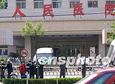 北京人民醫院二十四日上午作為首批受非典性肺炎污染的醫院,成為首批被隔離的區域。作者:滿會喬